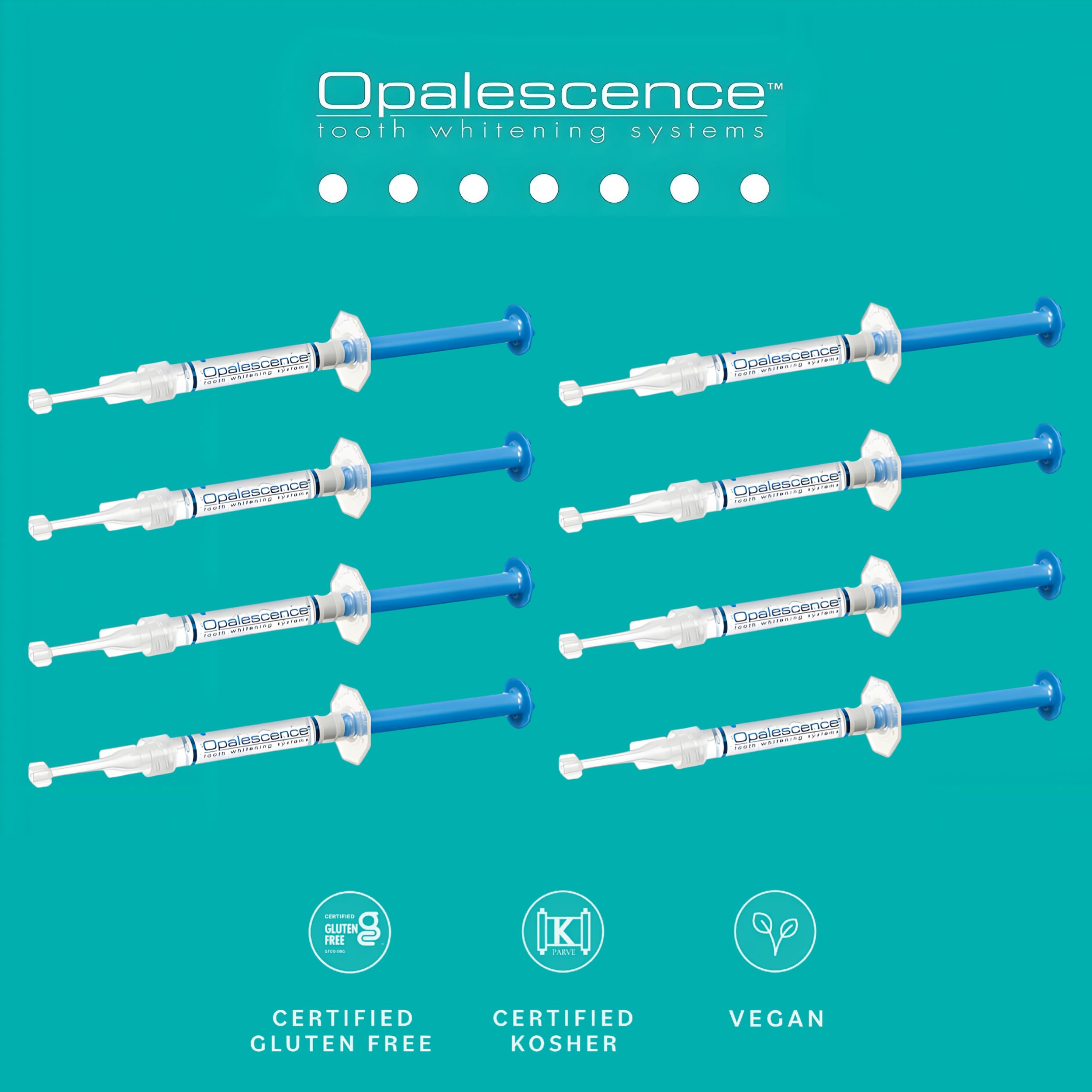 - DELUXE OPAL BY OPALESCENCE LINE: NO LED Light Needed or Recommended. Carbamide Peroxide Gel-filled Syringes for efficient tooth whitening and easy delivery to teeth whitening trays. Compatible with Invisalign trays, aligners, retainers, and custom dental trays (none included).